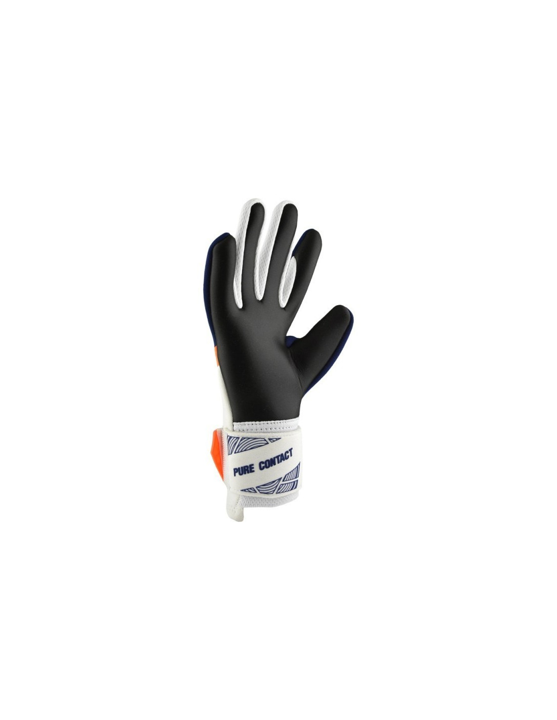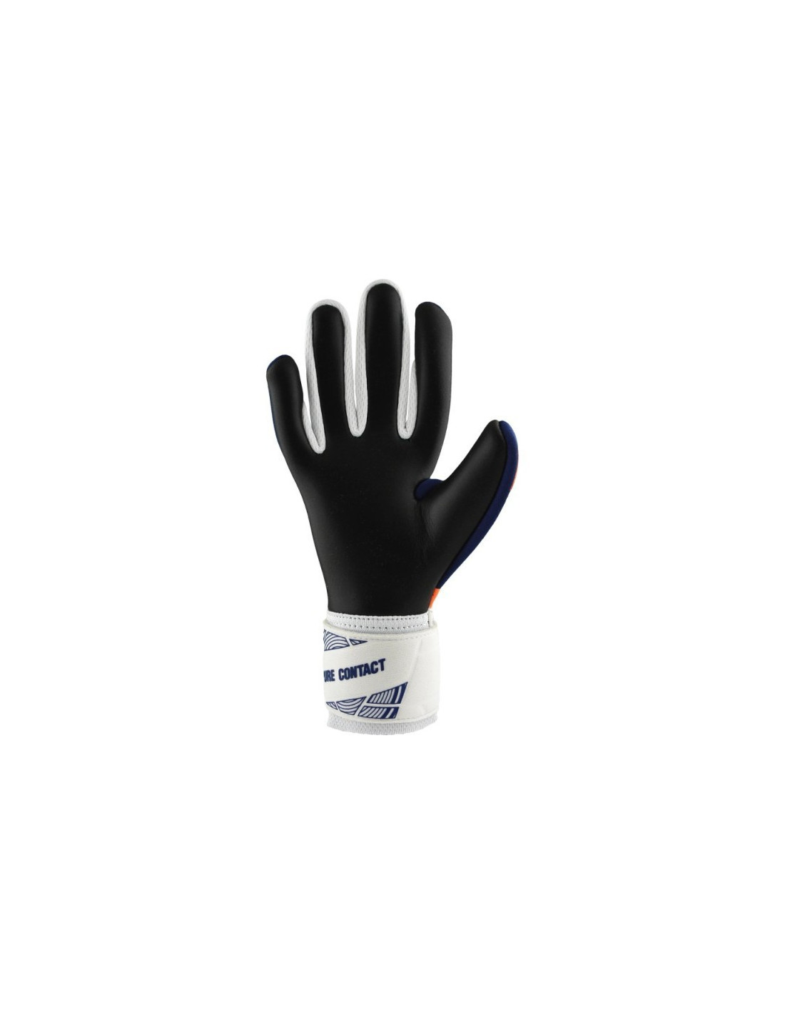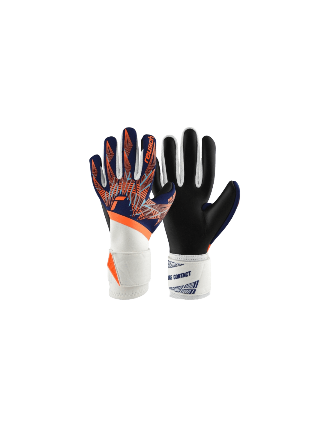 Reusch-Handschuhe verfügen über eine vorgeformte Konstruktionstechnologie, die ihnen eine natürlich vorgeformte Haltung verleiht. Der Haftschaum verläuft durch den erweiterten Griffbereich bis zum Handschuheingang. Der Oberhandbereich besteht aus Neopren, fühlt sich wie eine zweite Haut an und bietet daher einen hervorragenden Tragekomfort. Durch den durchgehenden Riemen aus Neopren bietet dieser Handschuh guten Halt und eine gute Passform am Handgelenk. Darüber hinaus verhindert die asymmetrische Manschette Abrieb auf Kunstrasen oder harten Spielfeldoberflächen.