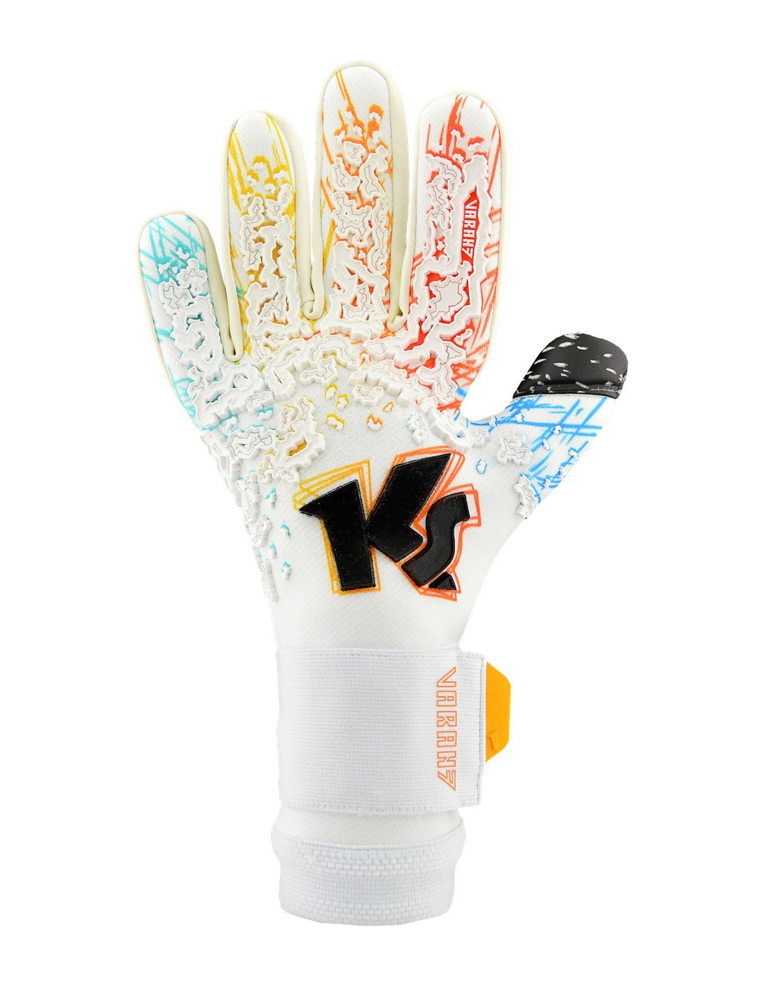 Handfläche: 4 mm SUPER GLUE-Latex . Es bietet Ihnen vom ersten Moment an den besten Halt. Nach umfangreichen Tests und hilfreichem Feedback vieler Profi- und Amateurtorhüter haben wir ein neues Komfortpolster für den Varan7 Champ NC entwickelt. Das Beste ist die hervorragende Balance zwischen Griffigkeit und Haltbarkeit.
