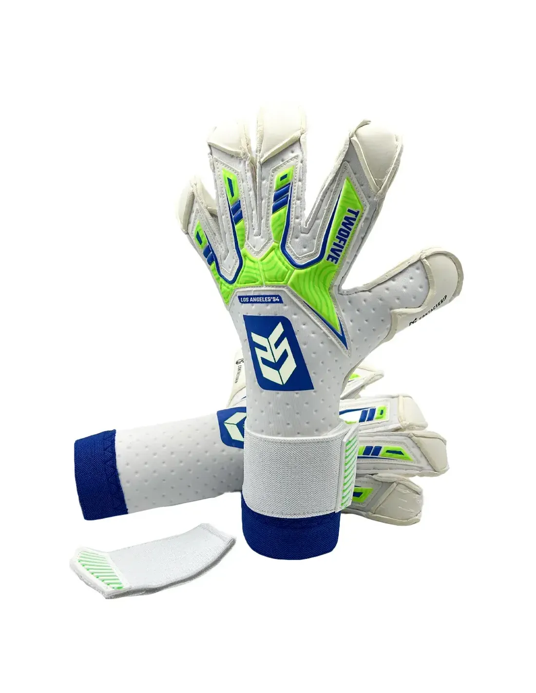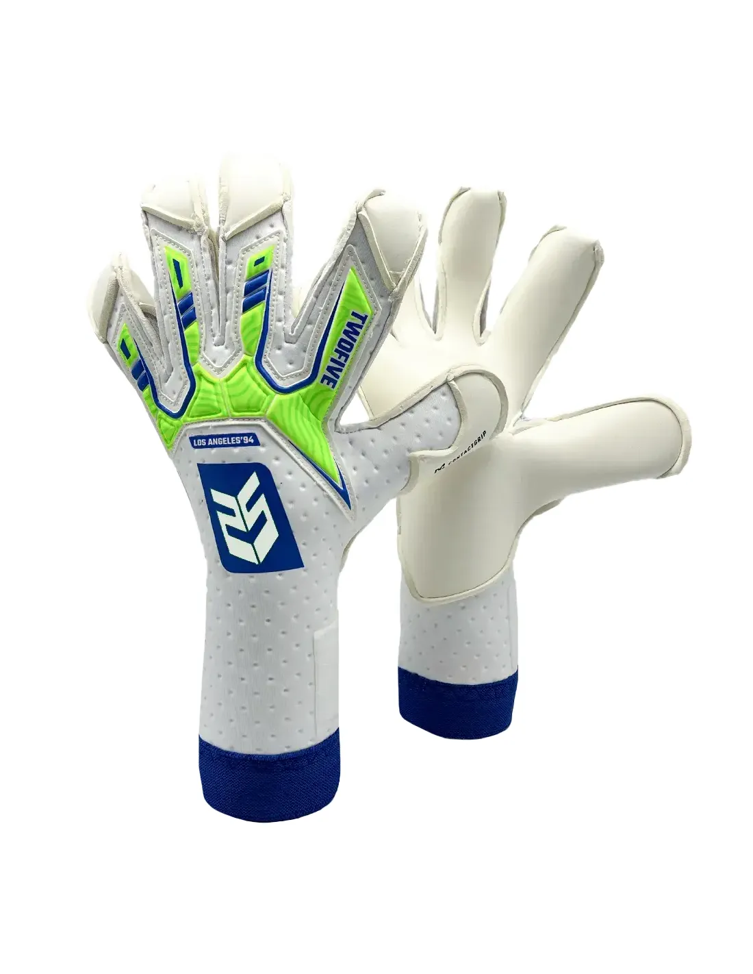 Los TwoFive Los Angeles Pro Green son guantes de portero de gama profesional, diseñados para ofrecer agarre de alto rendimiento, ajuste cómodo y control del balón en entrenamientos y partidos.