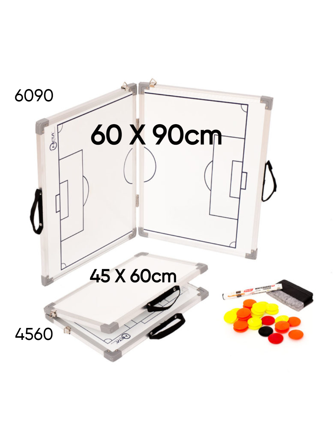 Uno strumento essenziale per qualsiasi allenatore che dirige l'attrezzatura. Avere un Corpo in alluminio e una lavagna con superficie magnetica. Con le chip magnetiche della lavagna sono incluse, Un tabellone e una bozza. Qualsiasi attrezzatura può usarlo per la formazione tattica. Il design unico di questa lavagna pieghevole magnetica lo fa risaltare. Quando lo stoccaggio o il trasporto è una preoccupazione, puoi piegarsi. Il consiglio è disponibile in due taglie: 45 * 60 cm (Piegare a 30 * 45 cm) e 60 * 90 cm (pieghevole a 45 * 60 cm).