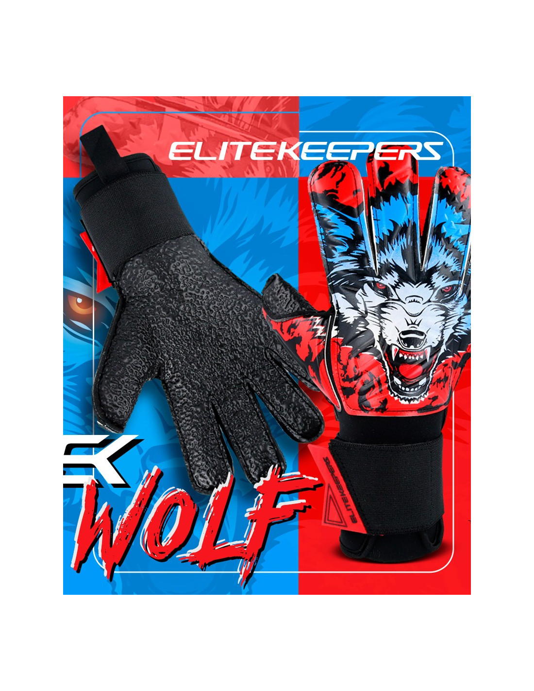 Guanti da portiere da calcio Elitekeepers EK WOLF - SERIE FANTASY Guanti da portiere con taglio FLAT Guanti da portiere per bambini e allenamento. Palmo molto resistente.