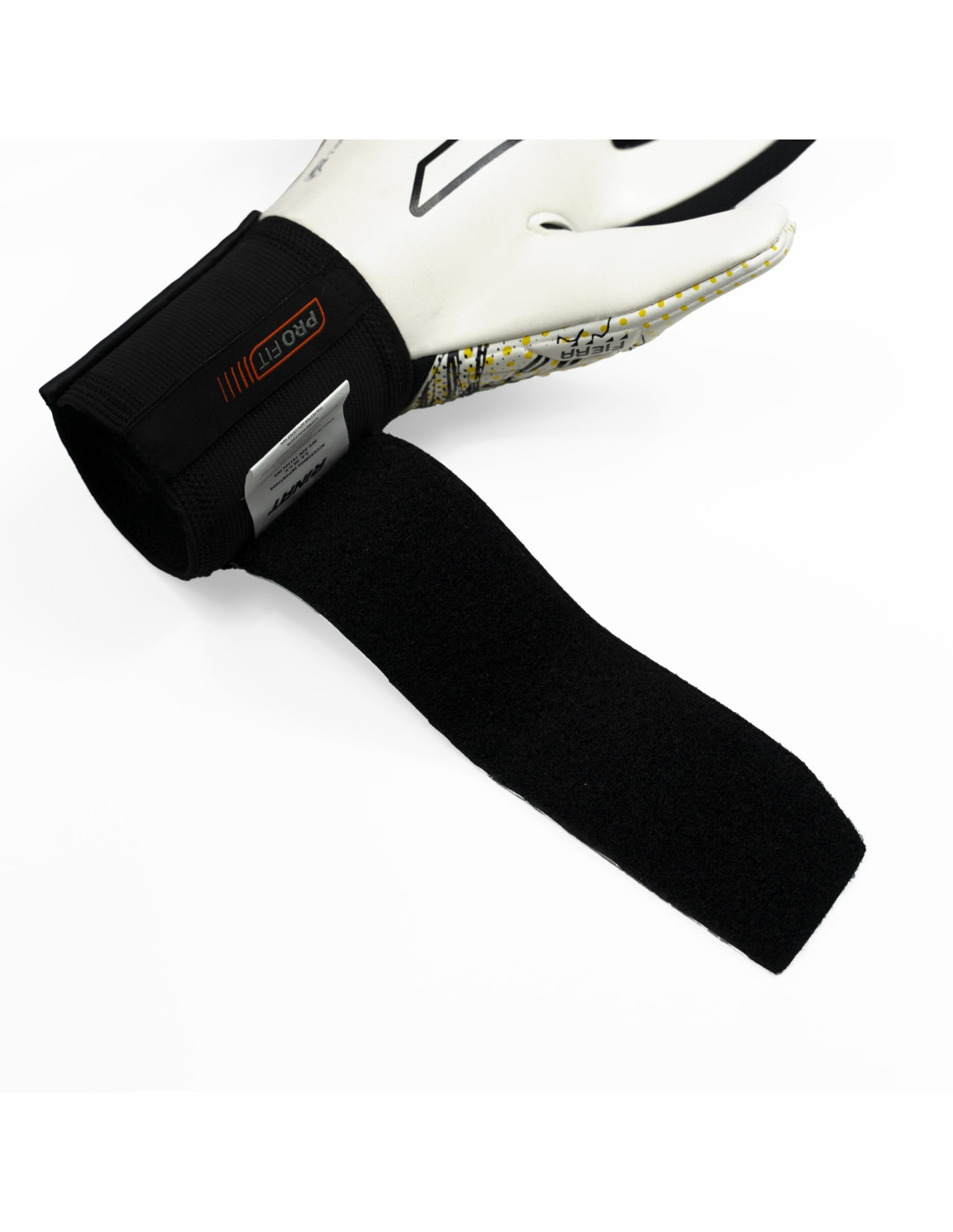 Vicino: Per comodità, il guanto ha un braccialetto elastico che è completato da una breve vescica a mezzo giro. Ciò consente una regolazione sicura attorno al polso, fornendo il supporto necessario per farti sentire sicuro in ogni gioco.