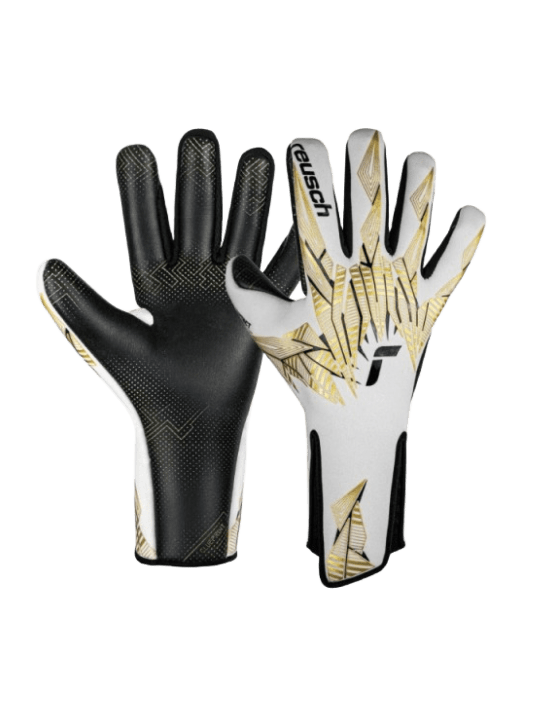 Los Guantes Reusch Pure Contact X GluePrint. Sin Correa ofrecen un agarre y una adherencia superiores gracias a la tecnología adhesiva GluePrint y al látex Reusch Grip Gold X. Esta combinación garantiza un rendimiento excepcional en el campo, proporcionando una sensación de control y confianza superiores.