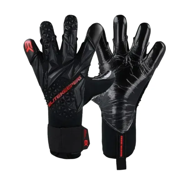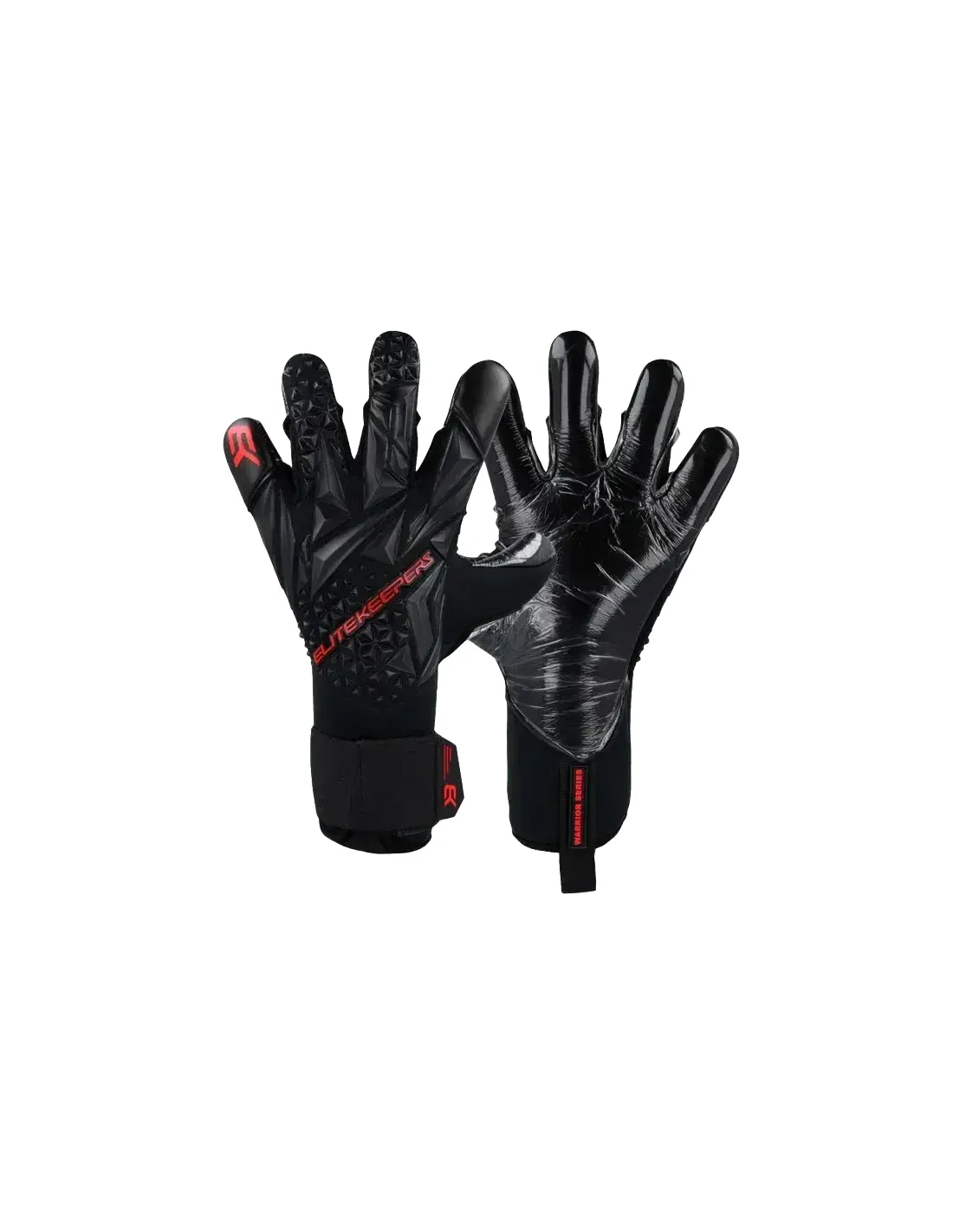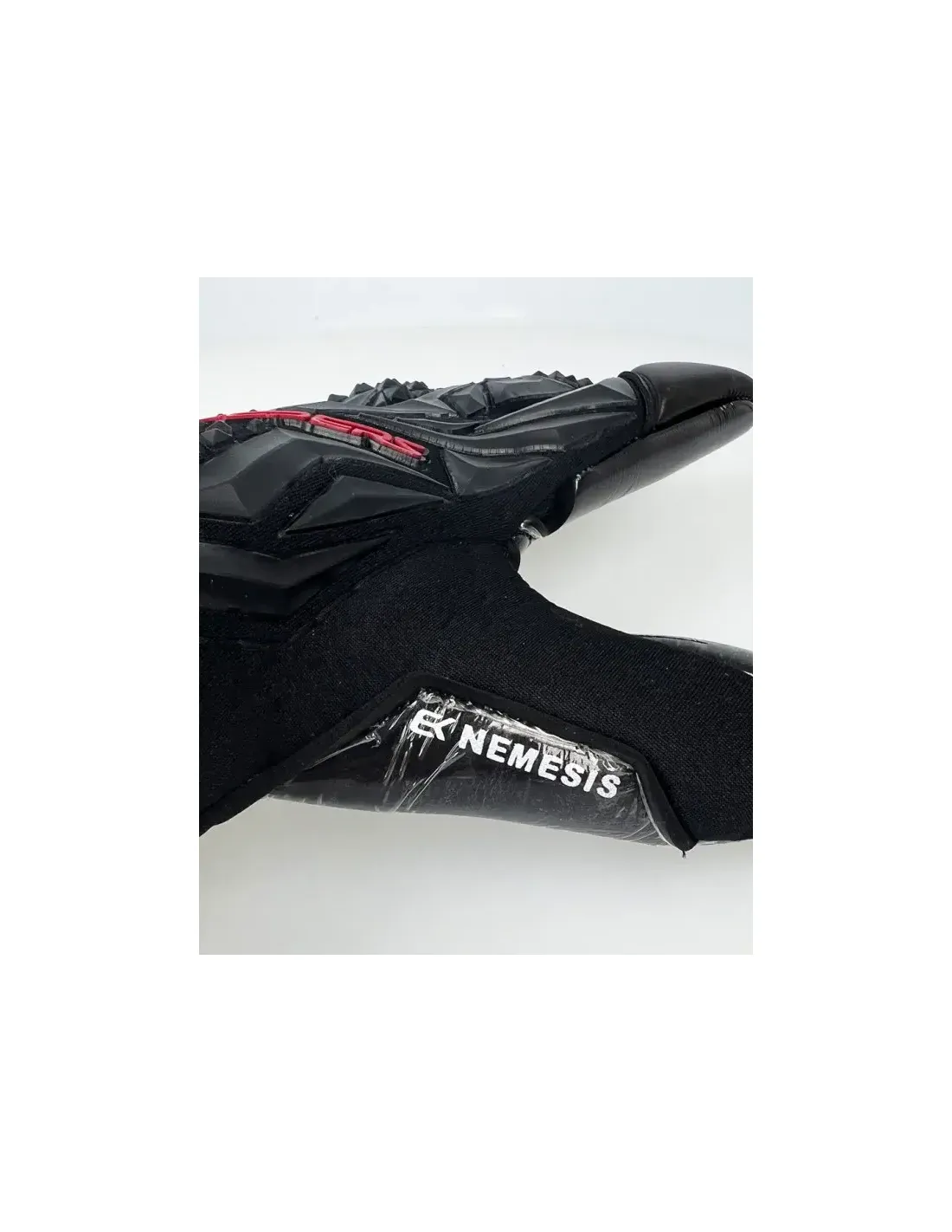 Guanti da portiere EK Nemesis - Serie Olimpo. Ispirato dalla dea greca della giustizia e della retribuzione, EK Némesis presenta un design nero scioccante con dettagli in rosso. Questo guanto è versatile, offrendo a Grip eccezionale sia in condizioni asciutte che bagnate, massima durata e una parte posteriore rinforzata con silicone 3D, Ideale per padroneggiare ogni autorizzazione.