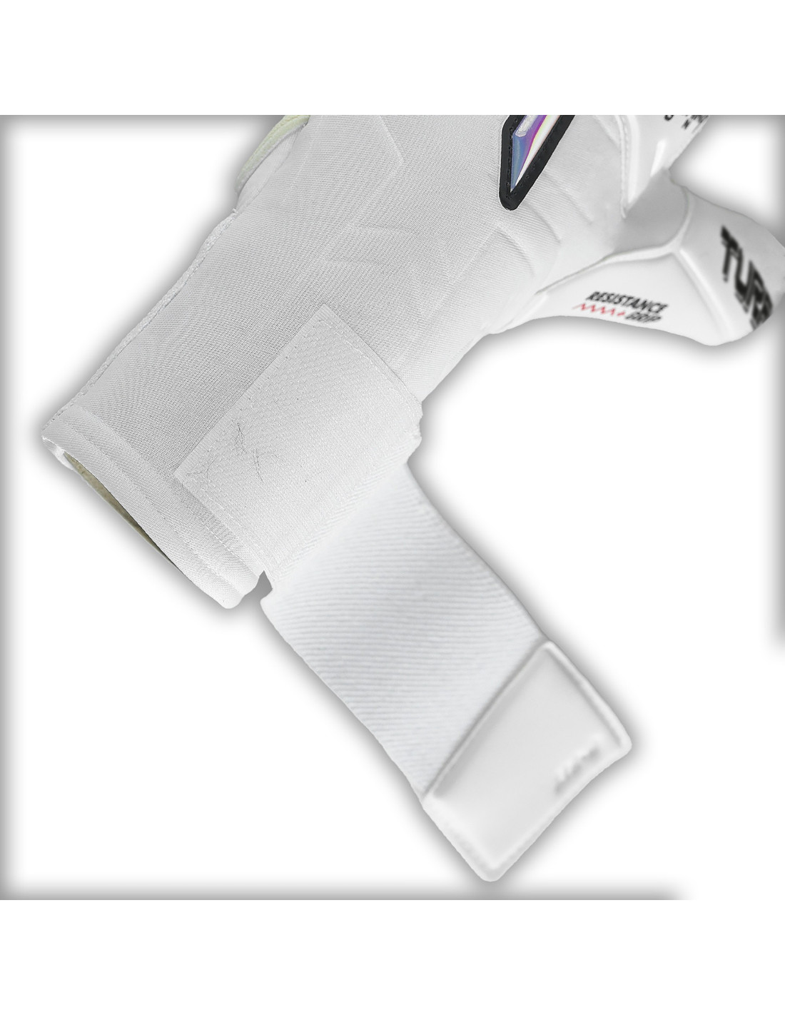 Perto: Feita de têxteis no topo, é integrado com um Pulseira elástica na área interna, assegurado por um rack elástico, o que permite que cada goleiro personalize a configuração de acordo com suas preferências.