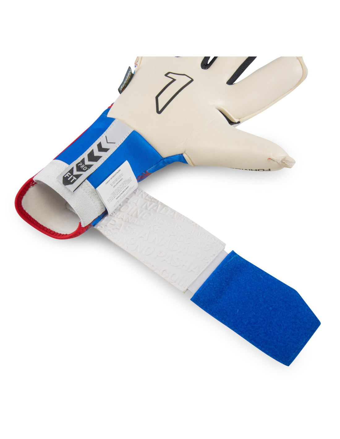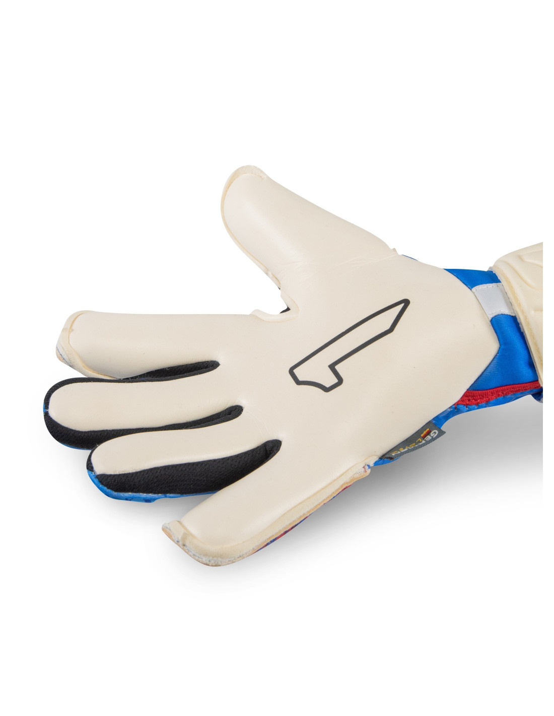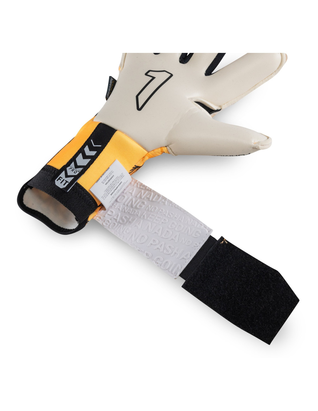 Perto: Neoprene na parte superior e elástica pulseira na parte inferior para obter um ajuste perfeito. A Cintillo, feita de látex, é colocado abaixo da palma da mão, proporcionando uma extensão que aumenta a área de fixação. Além disso, tem uma janela têxtil personalizável através de uma aplicação de elástico, o que permite que cada goleiro ajuste de acordo com suas preferências.