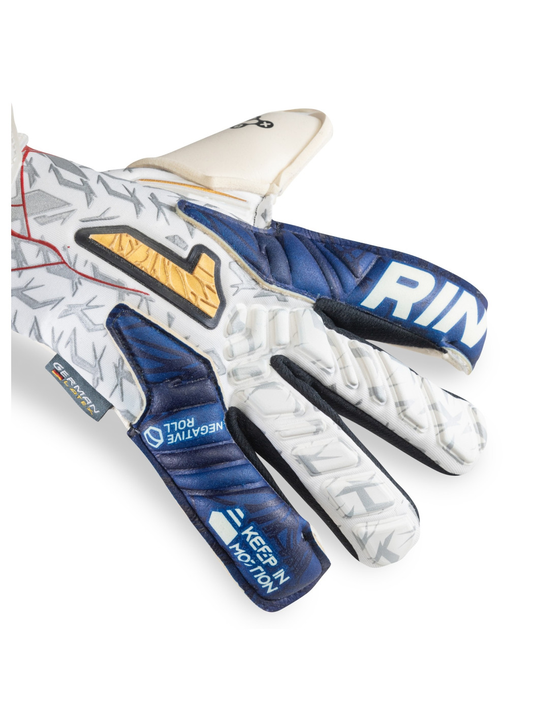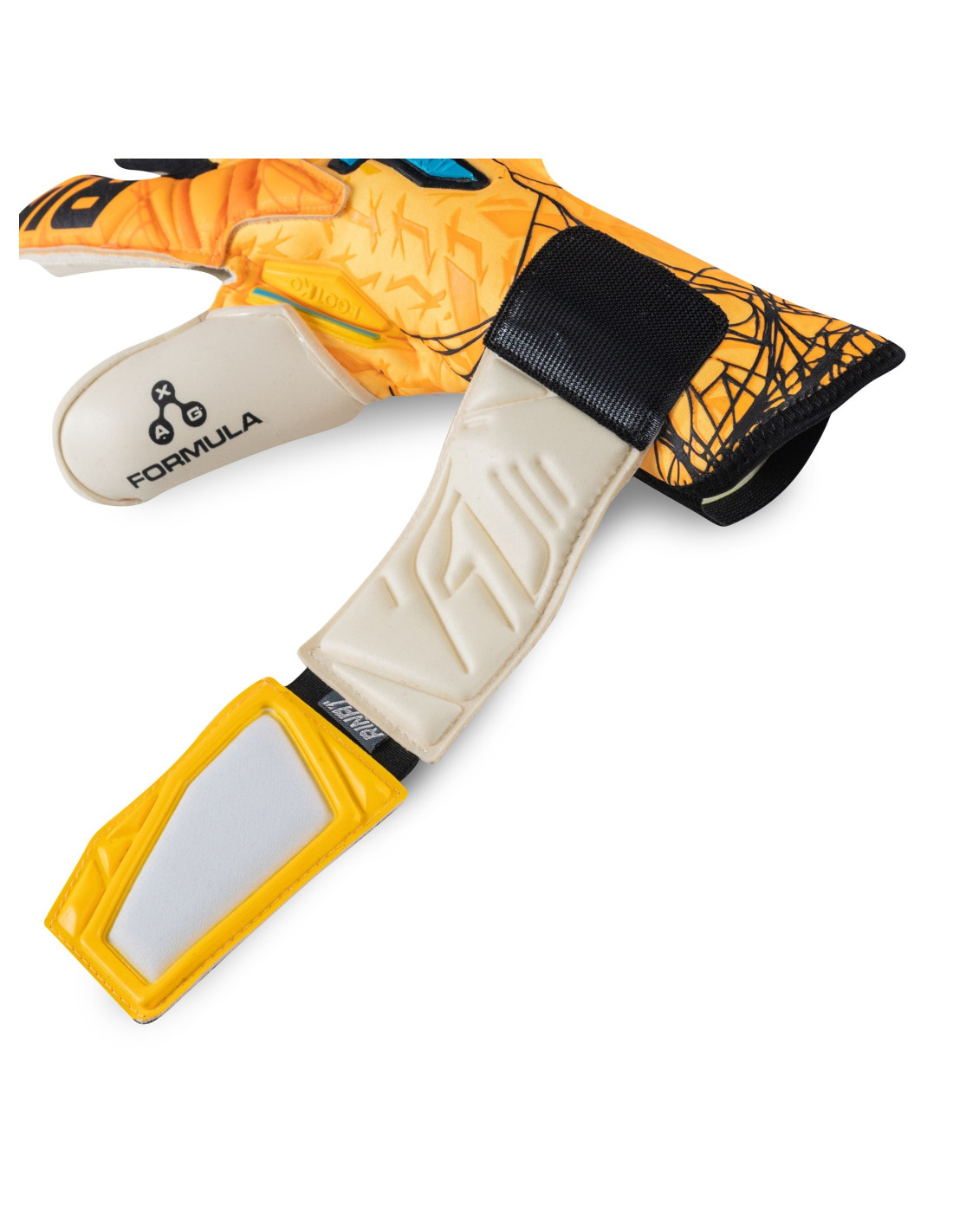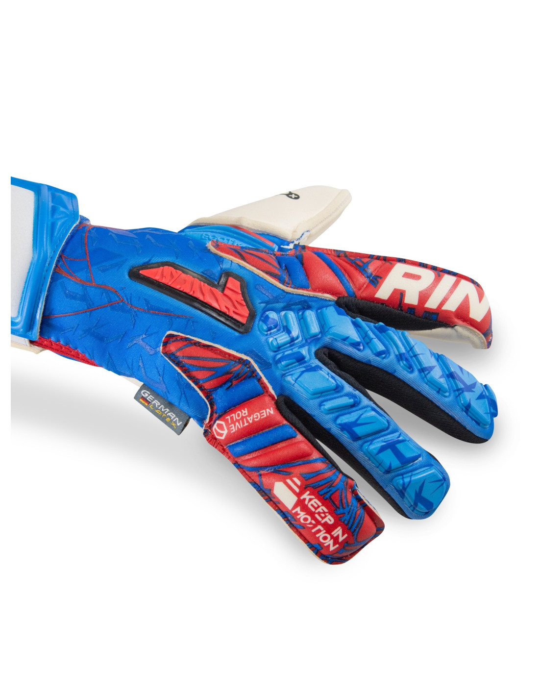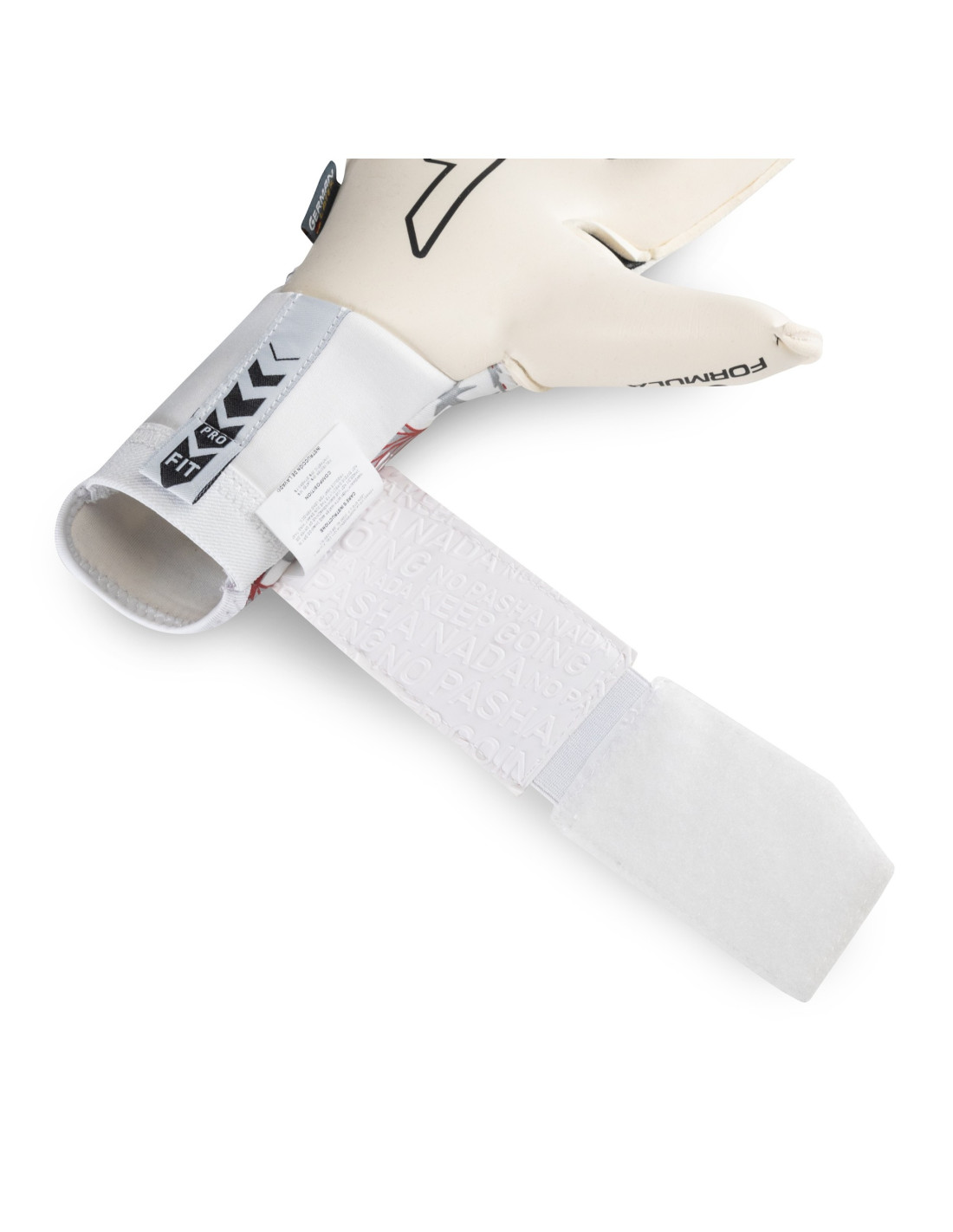 Perto: Neoprene na parte superior e elástica pulseira na parte inferior para obter um ajuste perfeito. A Cintillo, feita de látex, é colocado abaixo da palma da mão, proporcionando uma extensão que aumenta a área de fixação. Além disso, tem uma janela têxtil personalizável através de uma aplicação de elástico, o que permite que cada goleiro ajuste de acordo com suas preferências.